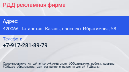 РДД, рекламная фирма по адресу 420066, Татарстан, Казань, проспект Ибрагимова, 58 в дальнейшем Организация, размещена в следующих категориях: