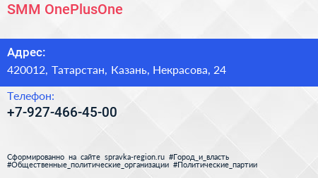 SMM. OnePlusOne по адресу 420012, Татарстан, Казань, Некрасова, 24 в дальнейшем Организация, размещена в следующих категориях: