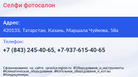 Селфи, фотосалон по адресу 420133, Татарстан, Казань, Маршала Чуйкова, 58а в дальнейшем Организация, размещена в следующих категориях: