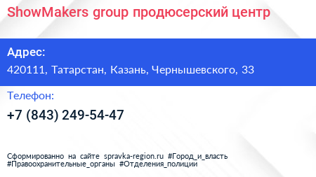 ShowMakers group, продюсерский центр по адресу 420111, Татарстан, Казань, Чернышевского, 33 в дальнейшем Организация, размещена в следующих категориях: