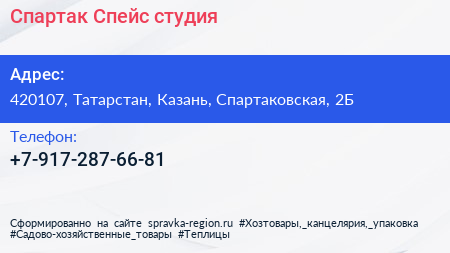 Спартак Спейс, студия по адресу 420107, Татарстан, Казань, Спартаковская, 2Б в дальнейшем Организация, размещена в следующих категориях: