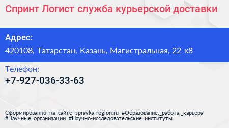 Спринт-Логист, служба курьерской доставки по адресу 420108, Татарстан, Казань, Магистральная, 22 к8 в дальнейшем Организация, размещена в следующих категориях: