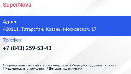 SuperNova по адресу 420111, Татарстан, Казань, Московская, 17 в дальнейшем Организация, размещена в следующих категориях: