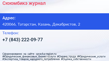 Сююмбикэ, журнал по адресу 420066, Татарстан, Казань, Декабристов, 2 в дальнейшем Организация, размещена в следующих категориях: