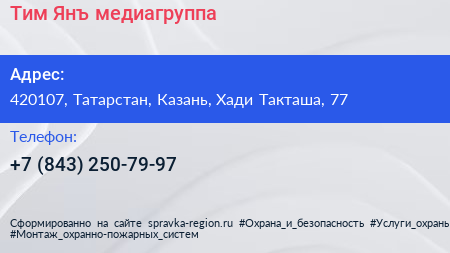 Тим`Янъ, медиагруппа по адресу 420107, Татарстан, Казань, Хади Такташа, 77 в дальнейшем Организация, размещена в следующих категориях: