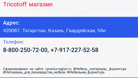 Tricotoff, магазин по адресу 420087, Татарстан, Казань, Гвардейская, 54и в дальнейшем Организация, размещена в следующих категориях: