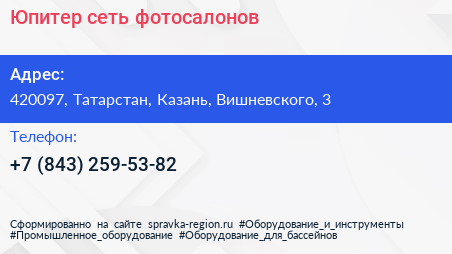 Юпитер, сеть фотосалонов по адресу 420097, Татарстан, Казань, Вишневского, 3 в дальнейшем Организация, размещена в следующих категориях:
