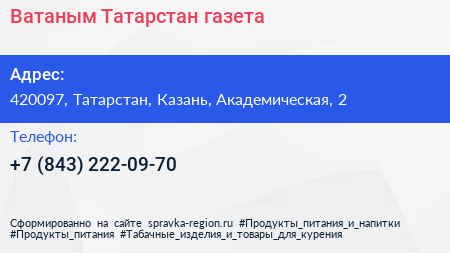 Ватаным Татарстан, газета по адресу 420097, Татарстан, Казань, Академическая, 2 в дальнейшем Организация, размещена в следующих категориях: