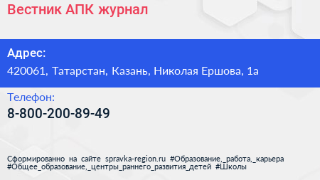 Вестник. АПК, журнал по адресу 420061, Татарстан, Казань, Николая Ершова, 1а в дальнейшем Организация, размещена в следующих категориях: