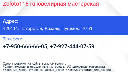Zoloto116.ru, ювелирная мастерская по адресу 420111, Татарстан, Казань, Пушкина, 9/51 в дальнейшем Организация, размещена в следующих категориях: