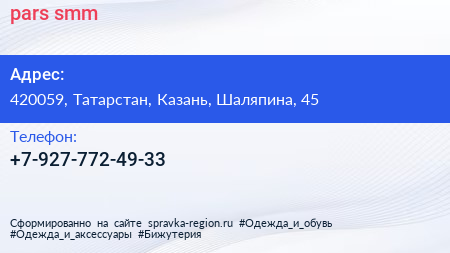 pars.smm по адресу 420059, Татарстан, Казань, Шаляпина, 45 в дальнейшем Организация, размещена в следующих категориях: