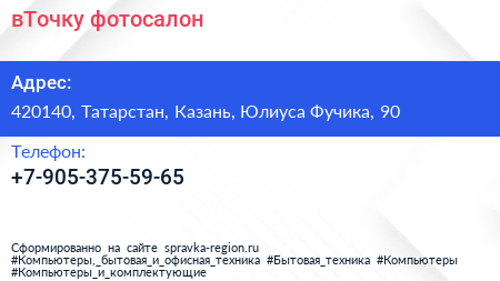 вТочку, фотосалон по адресу 420140, Татарстан, Казань, Юлиуса Фучика, 90 в дальнейшем Организация, размещена в следующих категориях: