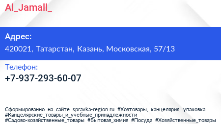 Al_Jamall_ по адресу 420021, Татарстан, Казань, Московская, 57/13 в дальнейшем Организация, размещена в следующих категориях: