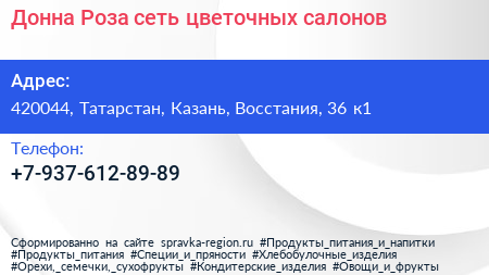 Донна Роза, сеть цветочных салонов по адресу 420044, Татарстан, Казань, Восстания, 36 к1 в дальнейшем Организация, размещена в следующих категориях: