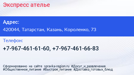 Экспресс-ателье по адресу 420044, Татарстан, Казань, Короленко, 73 в дальнейшем Организация, размещена в следующих категориях: