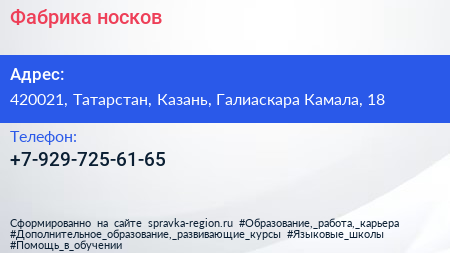 Фабрика носков по адресу 420021, Татарстан, Казань, Галиаскара Камала, 18 в дальнейшем Организация, размещена в следующих категориях: