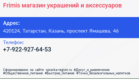 Frimis, магазин украшений и аксессуаров по адресу 420124, Татарстан, Казань, проспект Ямашева, 46 в дальнейшем Организация, размещена в следующих категориях: