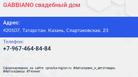 GABBIANO, свадебный дом по адресу 420107, Татарстан, Казань, Спартаковская, 23 в дальнейшем Организация, размещена в следующих категориях: