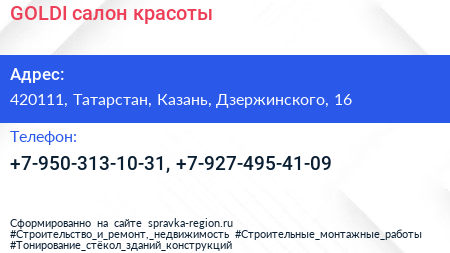 GOLDI, салон красоты по адресу 420111, Татарстан, Казань, Дзержинского, 16 в дальнейшем Организация, размещена в следующих категориях: