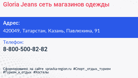 Gloria Jeans, сеть магазинов одежды по адресу 420049, Татарстан, Казань, Павлюхина, 91 в дальнейшем Организация, размещена в следующих категориях: