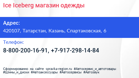Ice Iceberg, магазин одежды по адресу 420107, Татарстан, Казань, Спартаковская, 6 в дальнейшем Организация, размещена в следующих категориях: