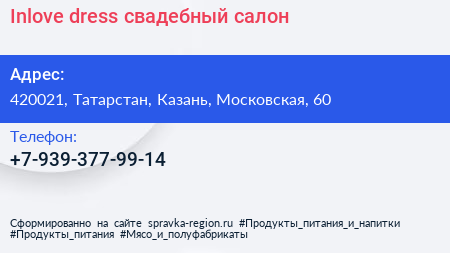Inlove dress, свадебный салон по адресу 420021, Татарстан, Казань, Московская, 60 в дальнейшем Организация, размещена в следующих категориях: