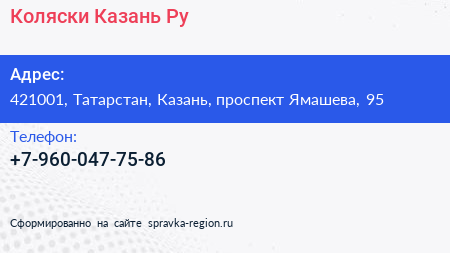 Коляски-Казань.Ру по адресу 421001, Татарстан, Казань, проспект Ямашева, 95 в дальнейшем Организация, размещена в следующих категориях: