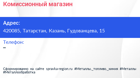 Комиссионный магазин по адресу 420085, Татарстан, Казань, Гудованцева, 15 в дальнейшем Организация, размещена в следующих категориях: