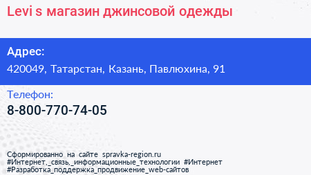 Levi`s, магазин джинсовой одежды по адресу 420049, Татарстан, Казань, Павлюхина, 91 в дальнейшем Организация, размещена в следующих категориях: