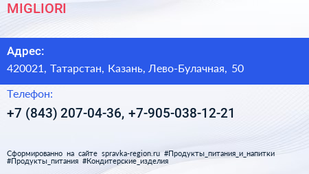 MIGLIORI по адресу 420021, Татарстан, Казань, Лево-Булачная, 50 в дальнейшем Организация, размещена в следующих категориях: