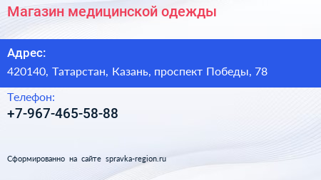 Магазин медицинской одежды по адресу 420140, Татарстан, Казань, проспект Победы, 78 в дальнейшем Организация, размещена в следующих категориях:
