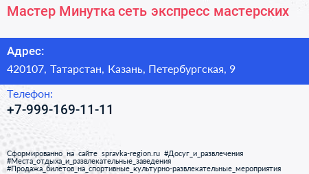 Мастер Минутка, сеть экспресс-мастерских по адресу 420107, Татарстан, Казань, Петербургская, 9 в дальнейшем Организация, размещена в следующих категориях: