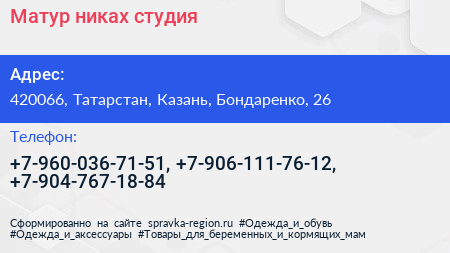 Матур, никах-студия по адресу 420066, Татарстан, Казань, Бондаренко, 26 в дальнейшем Организация, размещена в следующих категориях: