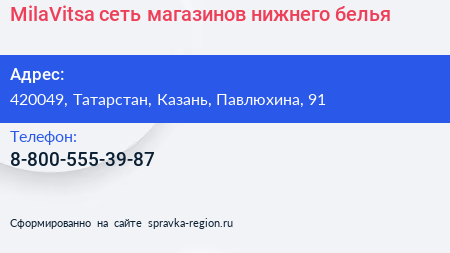 MilaVitsa, сеть магазинов нижнего белья по адресу 420049, Татарстан, Казань, Павлюхина, 91 в дальнейшем Организация, размещена в следующих категориях: