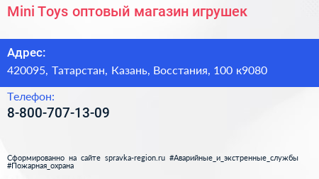 Mini-Toys, оптовый магазин игрушек по адресу 420095, Татарстан, Казань, Восстания, 100 к9080 в дальнейшем Организация, размещена в следующих категориях: