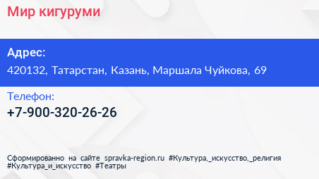 Мир кигуруми по адресу 420132, Татарстан, Казань, Маршала Чуйкова, 69 в дальнейшем Организация, размещена в следующих категориях: