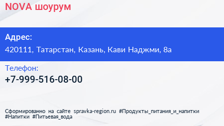 NOVA, шоурум по адресу 420111, Татарстан, Казань, Кави Наджми, 8а в дальнейшем Организация, размещена в следующих категориях: