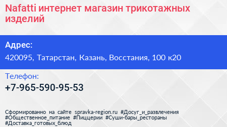 Nafatti, интернет-магазин трикотажных изделий по адресу 420095, Татарстан, Казань, Восстания, 100 к20 в дальнейшем Организация, размещена в следующих категориях: