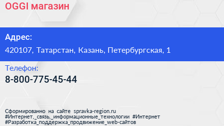 OGGI, магазин по адресу 420107, Татарстан, Казань, Петербургская, 1 в дальнейшем Организация, размещена в следующих категориях: