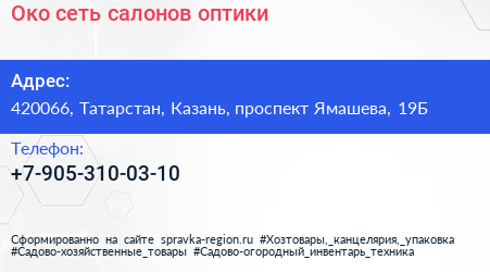 Око, сеть салонов оптики по адресу 420066, Татарстан, Казань, проспект Ямашева, 19Б в дальнейшем Организация, размещена в следующих категориях: