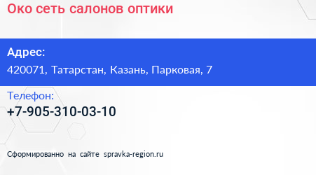 Око, сеть салонов оптики по адресу 420071, Татарстан, Казань, Парковая, 7 в дальнейшем Организация, размещена в следующих категориях: