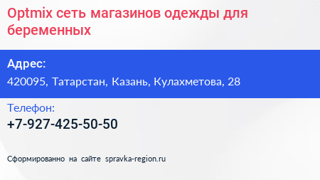 Optmix, сеть магазинов одежды для беременных по адресу 420095, Татарстан, Казань, Кулахметова, 28 в дальнейшем Организация, размещена в следующих категориях: