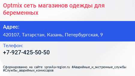 Optmix, сеть магазинов одежды для беременных по адресу 420107, Татарстан, Казань, Петербургская, 9 в дальнейшем Организация, размещена в следующих категориях: