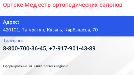 Ортекс-Мед, сеть ортопедических салонов по адресу 420101, Татарстан, Казань, Карбышева, 70 в дальнейшем Организация, размещена в следующих категориях: