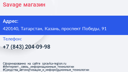 Savage, магазин по адресу 420140, Татарстан, Казань, проспект Победы, 91 в дальнейшем Организация, размещена в следующих категориях: