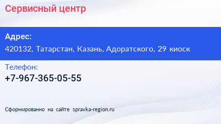 Сервисный центр по адресу 420132, Татарстан, Казань, Адоратского, 29 киоск в дальнейшем Организация, размещена в следующих категориях: