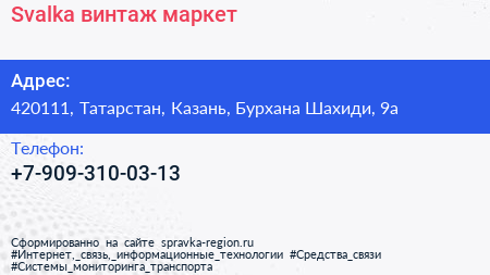 Svalka, винтаж-маркет по адресу 420111, Татарстан, Казань, Бурхана Шахиди, 9а в дальнейшем Организация, размещена в следующих категориях: