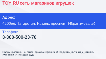 TOY.RU, сеть магазинов игрушек по адресу 420066, Татарстан, Казань, проспект Ибрагимова, 56 в дальнейшем Организация, размещена в следующих категориях: