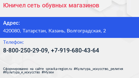 Юничел, сеть обувных магазинов по адресу 420080, Татарстан, Казань, Волгоградская, 2 в дальнейшем Организация, размещена в следующих категориях: