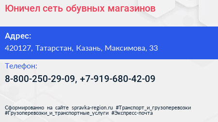 Юничел, сеть обувных магазинов по адресу 420127, Татарстан, Казань, Максимова, 33 в дальнейшем Организация, размещена в следующих категориях: